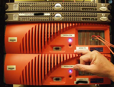 Конкретно эти серверы — в основной массе — двухпроцессорные Pentium IIIs решения, впрочем, ранее они работали на Celeron, но затем процессоры были сменены. Часть серверов — однопроцессорные. Еще пол-года назад Pentium IIIs обеспечивал оптимальное соотношение цена — производительность для HDL-задач NVIDIA, однако сейчас ситуация поменялась. Но, об этом чуть далее.