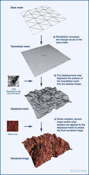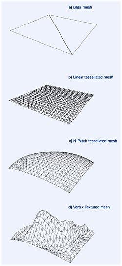Т.е. технология увеличения детализации моделей на основе дополнительной тесселяции треугольников. Без аппаратной поддержки N-патчей карты смещения не могут быть использованы с точки зрения DX9 эта технология лишь существенное дополнение к алгоритму N-патчей: