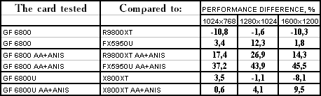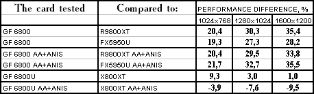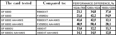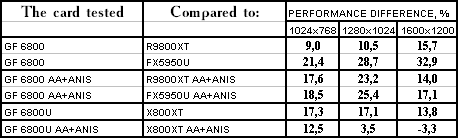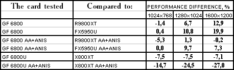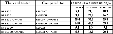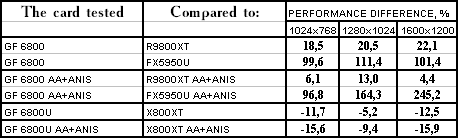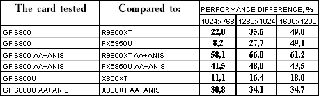 Итак, в целом: везде победа у GeForce 6800/6800 Ultra, но у «ультры» все намного скромнее.