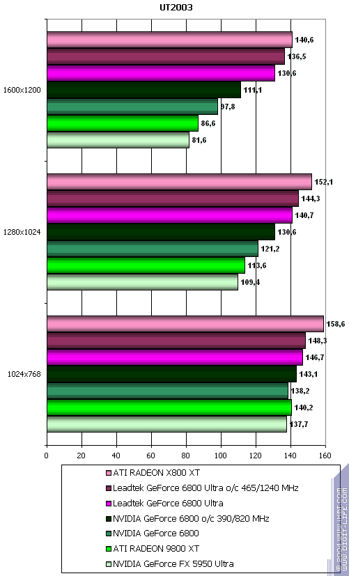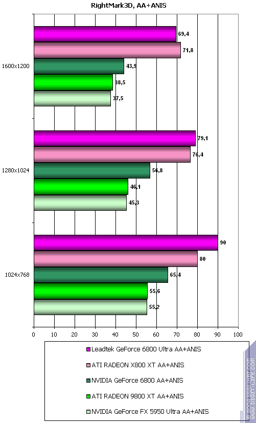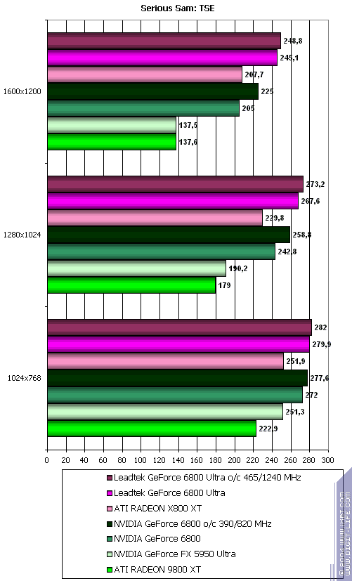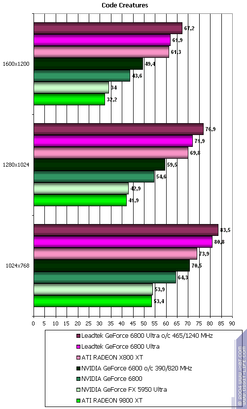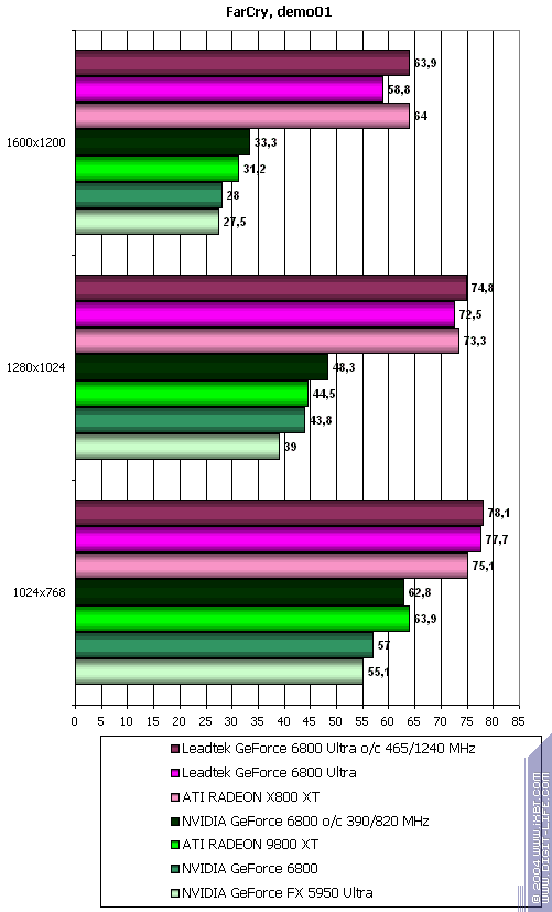 - Leadtek GeForce 6800 Ultra против ATI RADEON X800 XT — полное поражение, хотя не такое сильное, но все же.