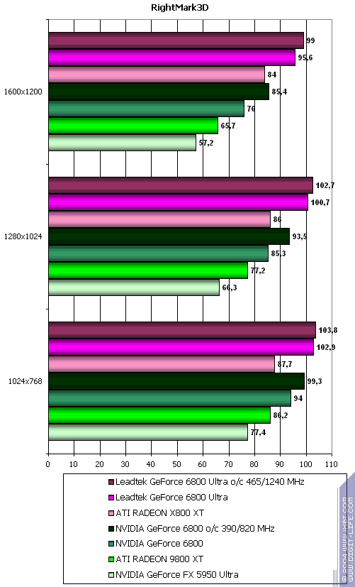 - NVIDIA GeForce 6800 Ultra (NV40). Часть 1 — особенности архитектуры и синтетические тесты в D3D RightMark (одностраничный вариант)
