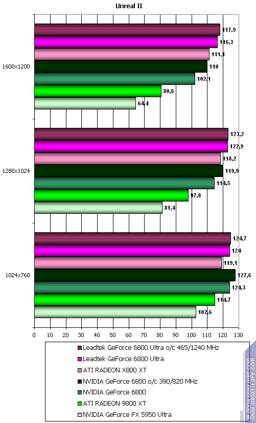 - Unreal 2: The Awakening (Infogrames), DirectX 8.1, мультитекстурирование, тестирование проводится при помощи вспомогательного пакета Bench'emAll! 2.5beta.