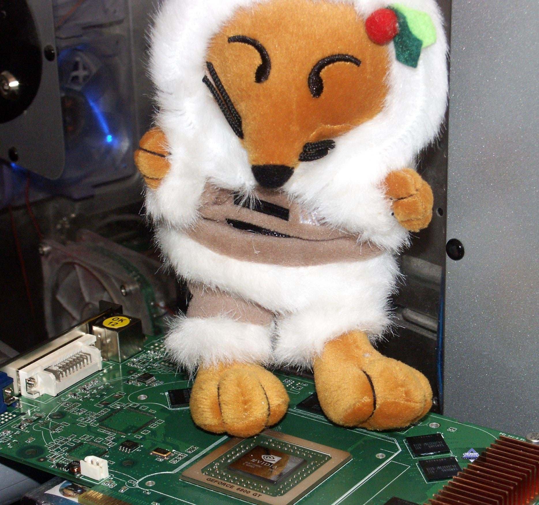 Под системой охлаждения находится GeForce 6800 GT.