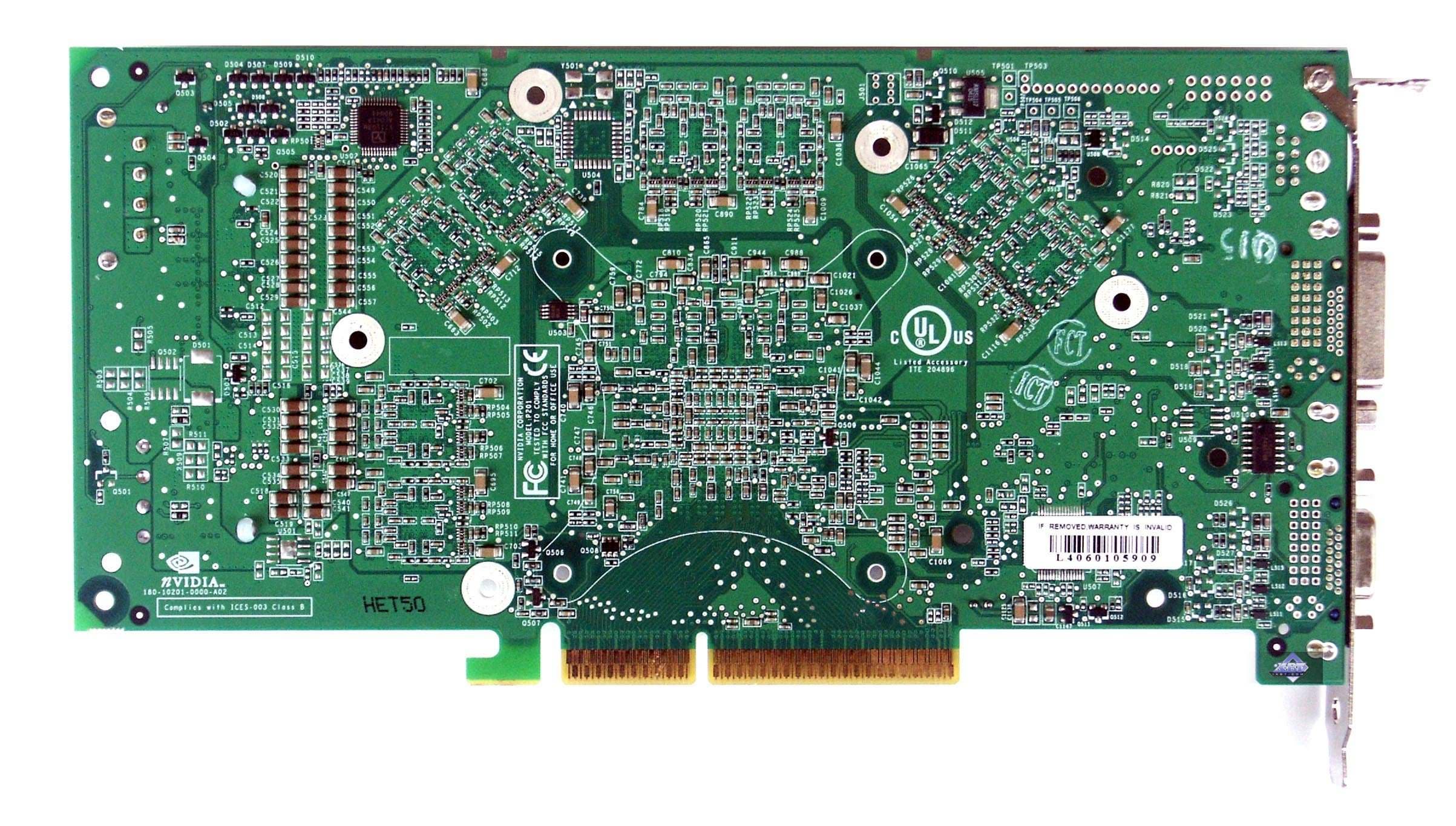Прекрасно видно, что карта базируется на той же самой PCB, что и 6800 Ultra. Только не установлен второй разъем внешнего питания.