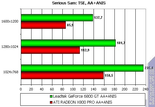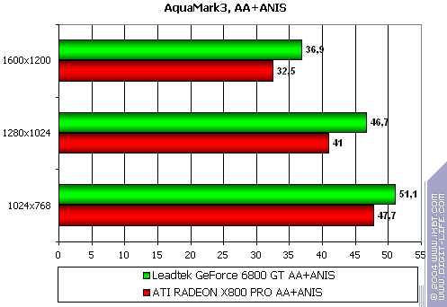Итоговый самый тяжелый режим с АА и анизотропией: поражение с крупным счетом, здесь у X800 PRO позиции очень сильны.