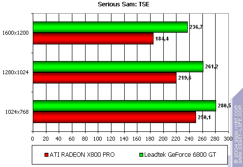 - Leadtek WinFast A400 GT TDH против ATI RADEON X800 PRO очевидно, что победа за 6800GT и весьма приличный выигрыш