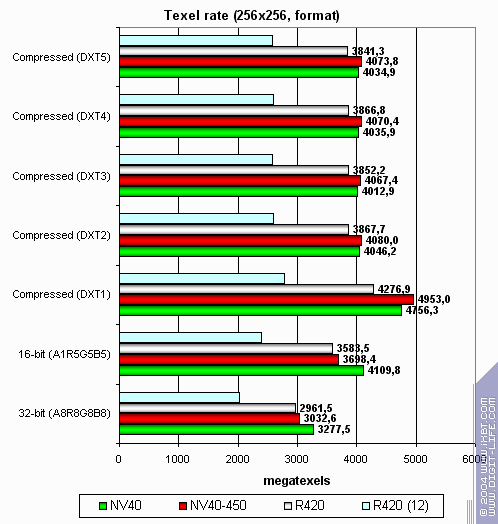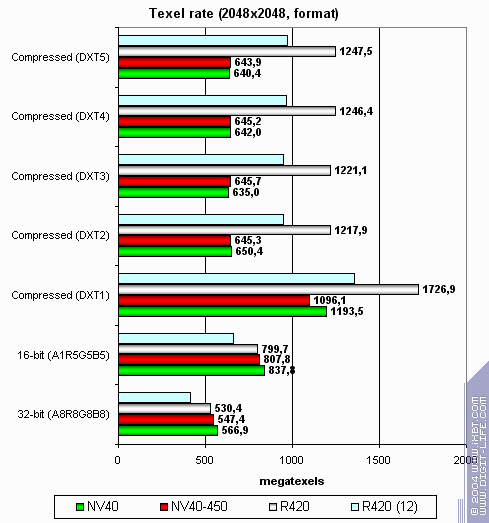 А теперь посмотрим на зависимость производительности текстурных модулей от формата текстур: