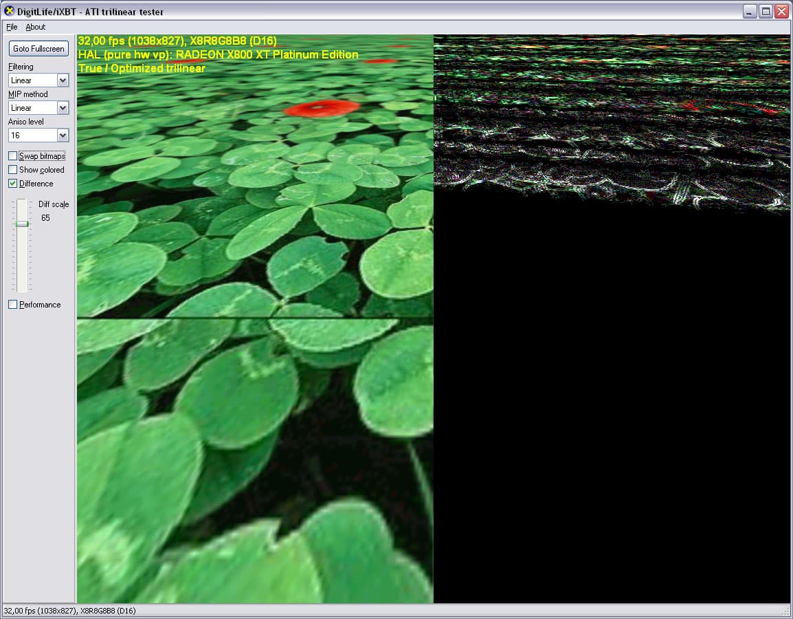 Как были получены данные изображения? На NVIDIA NV40 для получения изображения не оптимизированной трилинейной фильтрации использовалось отключение оптимизации из панели управления.