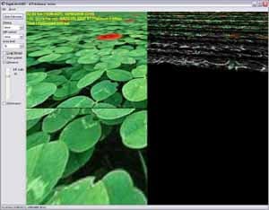 Если присмотреться, то видно, что изображение, полученное на RefRast, совпадает с изображением, полученным на R420 в режиме с отключенной оптимизацией фильтрации. Чтобы не быть голословным ниже, приведено изображение, содержащее попиксельные различия между стандартной и оптимизированной фильтрацией на R420 и NV40, а также разницу между изображениями RefRast и R420. Для удобства читателей, после попиксельного сравнения, все три изображения были склеены в одну большею картинку, и в Photoshop была выполнения операция "Auto Levels". В результате, различия между типами фильтрации видны невооруженным взглядом, и в то же время можно сравнивать между собой поведение различных чипов. Первым выводом является то, что изменения в трилинейной фильтрации на всех чипах не зависят от угла, под которым накладывается текстура. Другим очевидным выводом является почти полная идентичность выполняемой фильтрации между R420 и RefRast.