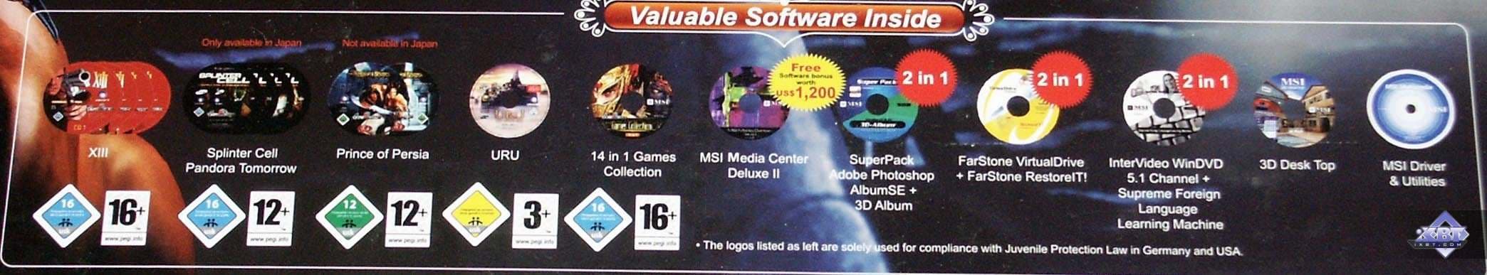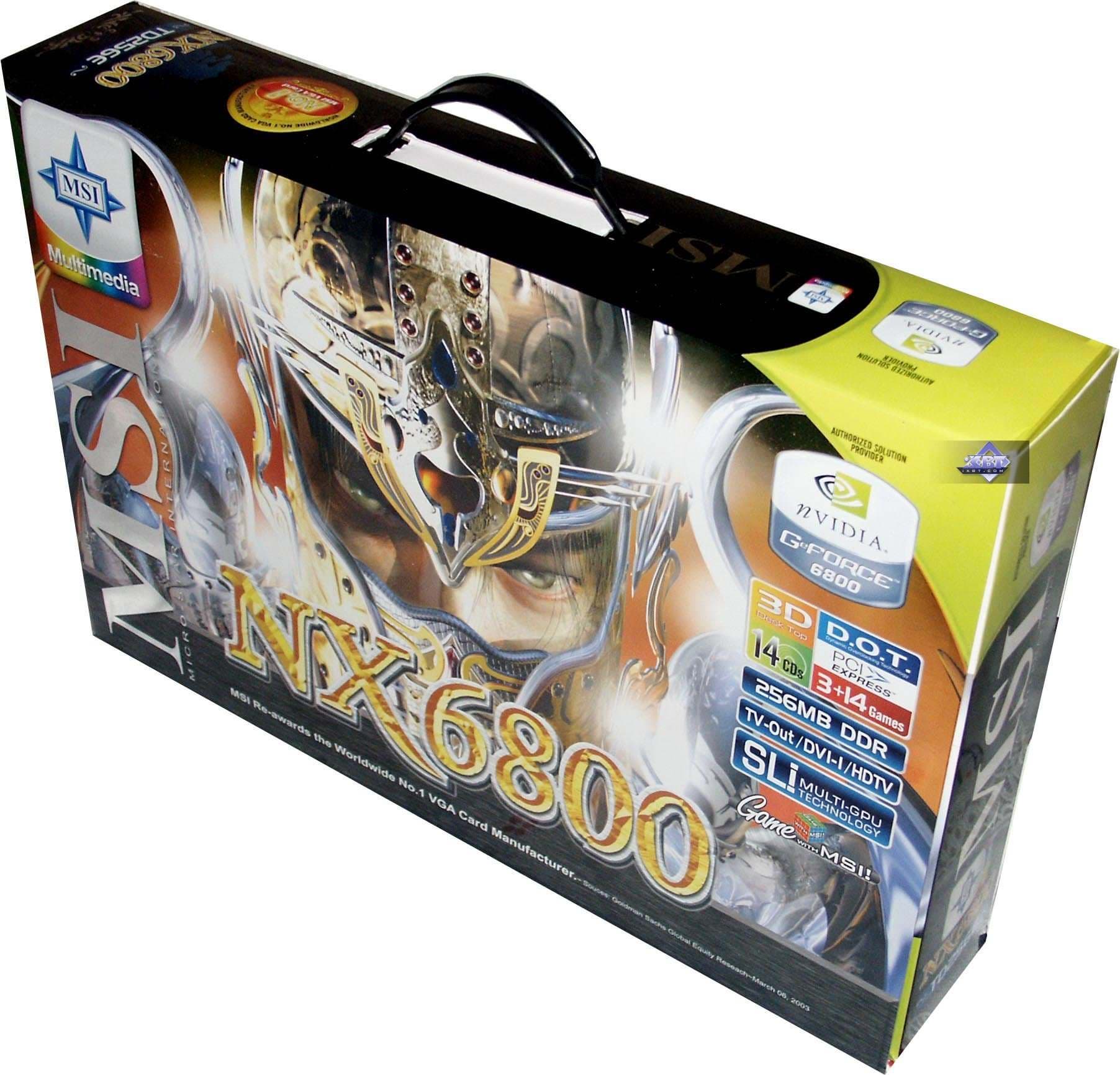 - GeForce 6800 GT (16 пиксельных и 6 вершинных конвейеров, частоты работы 350/500 (1000) МГц, 256бит-шина обмена с памятью, 256MB).