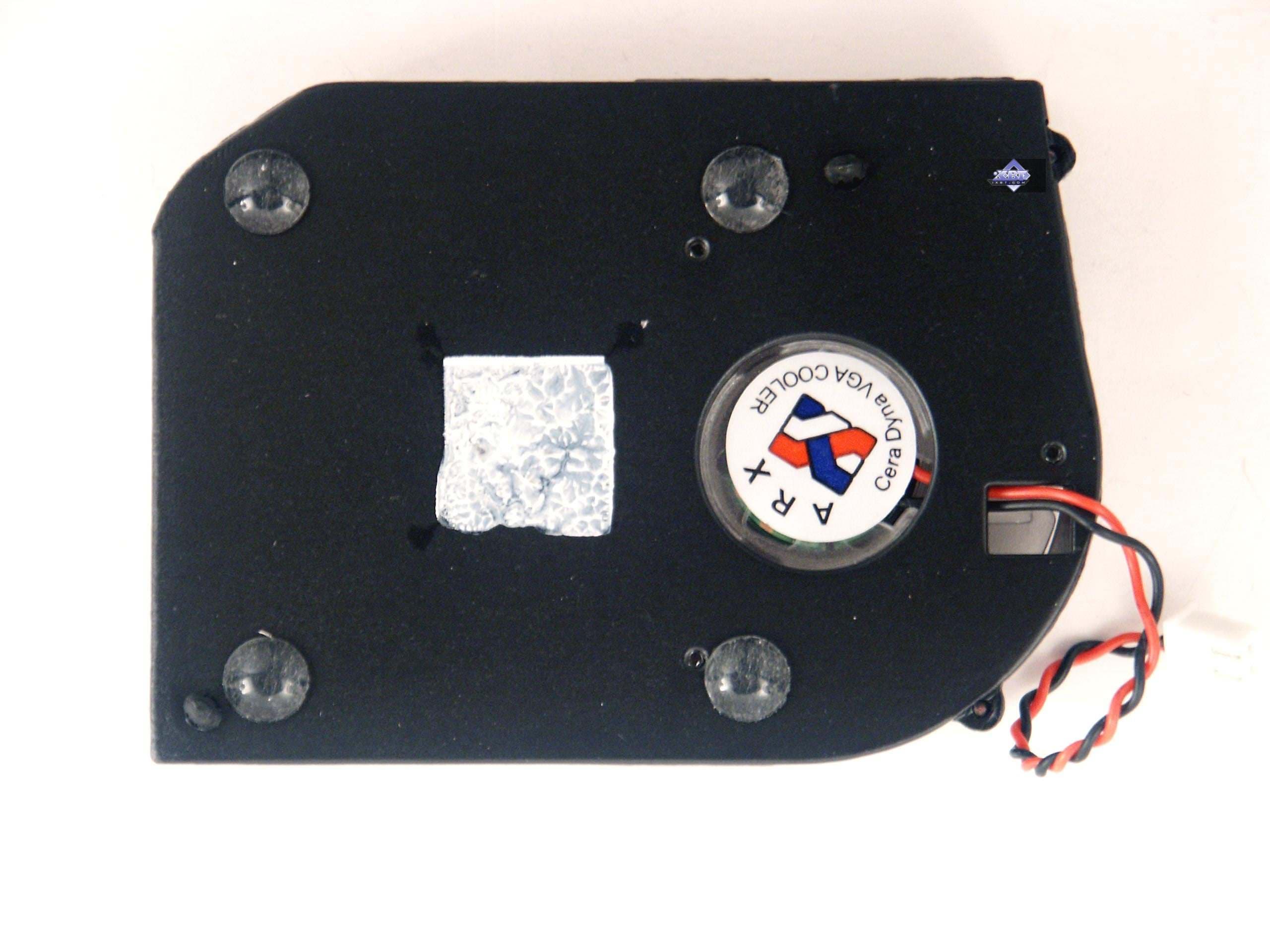 Кулер типа, как я называю, а-ля GeForce4. Да, впервые такого типа устройства появились с выходом видеокарт на базе GeForce4 Ti. Это закрытый радиатор со смещенным относительно центра вентилятором, который засасывает воздух и прогоняет его через решетку над графическим процессором. Частота вращения вентилятора — около 2000 оборотов в минуту, поэтому шума от него нет. Однако все же то, что воздух проходит через узкий корпус кулера, создает некоторый незначительный шум. Посмотреть видеоролик и оценить шум можно по этой ссылке (1.6MB, AVI DivX 5.1) и сравнить с фоновым шумом без видеокарты (740KB, AVI DivX 5.1). | ![]() |