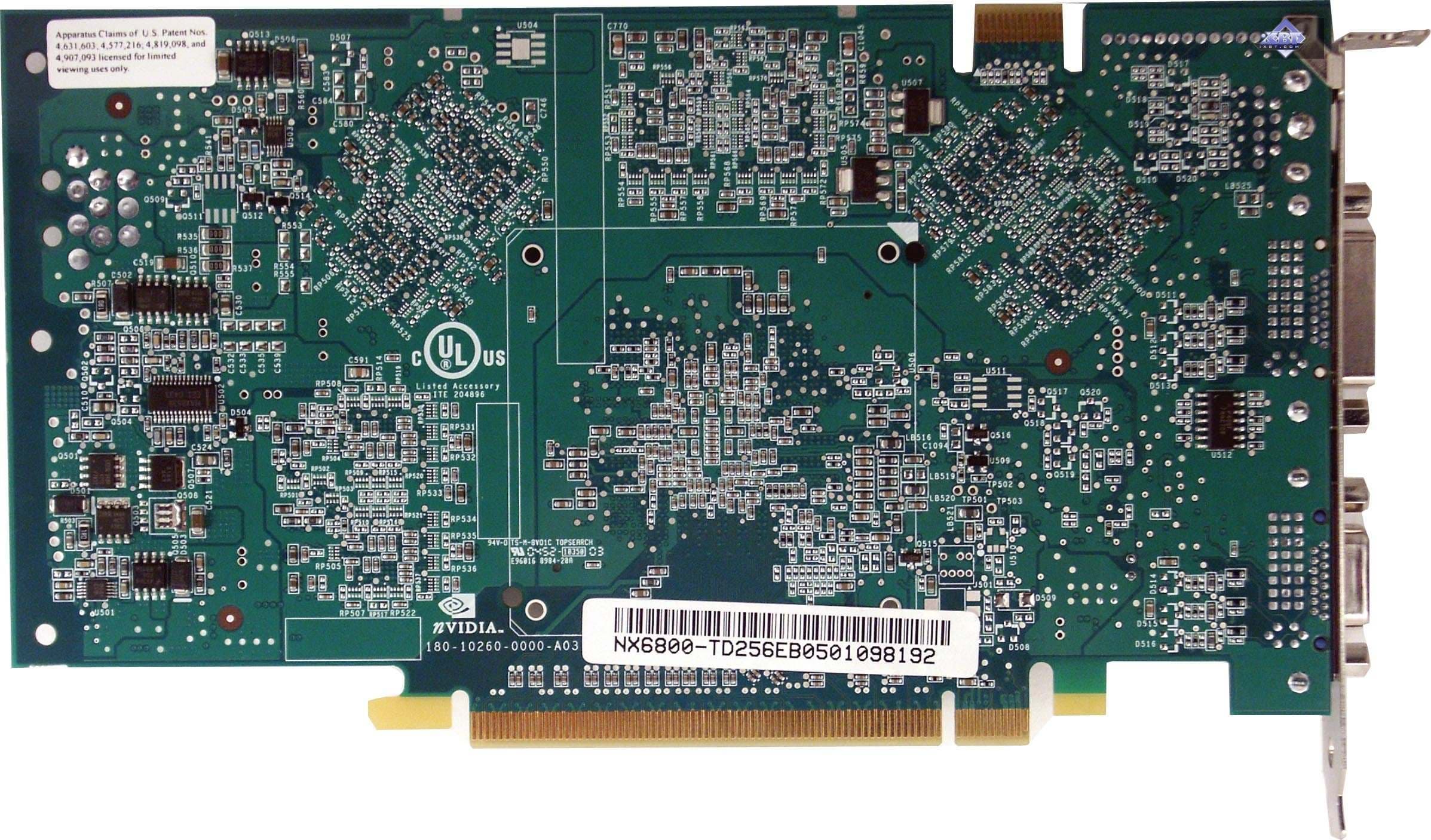 И потому было принято решение выпустить отдельный, уже 12/5-конвейерный (аппаратно!) чип со встроенной поддержкой PCI-E. То есть мост уже не требуется. Да и разблокировать нечего (в ядре только 12 конвейеров). И новинка получила кодовое имя NV41. Позже, когда карты на базе этого GPU, появились в продаже, никакие изменения в названия не были внесены: то есть перед нами все тот же GeForce 6800, но с суффиксом — PCI-E.