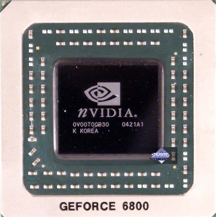 Поэтому следует иметь в виду, что GeForce 6800 AGP имеет чип — NV40, потенциально содержащий 16/6 конвейеров, из которых ВКЛЮЧЕНЫ и РАБОТАЮТ только 12/5. А GeForce 6800 PCI-E имеет чип NV41, содержащий изначально 12/5 конвейеров.