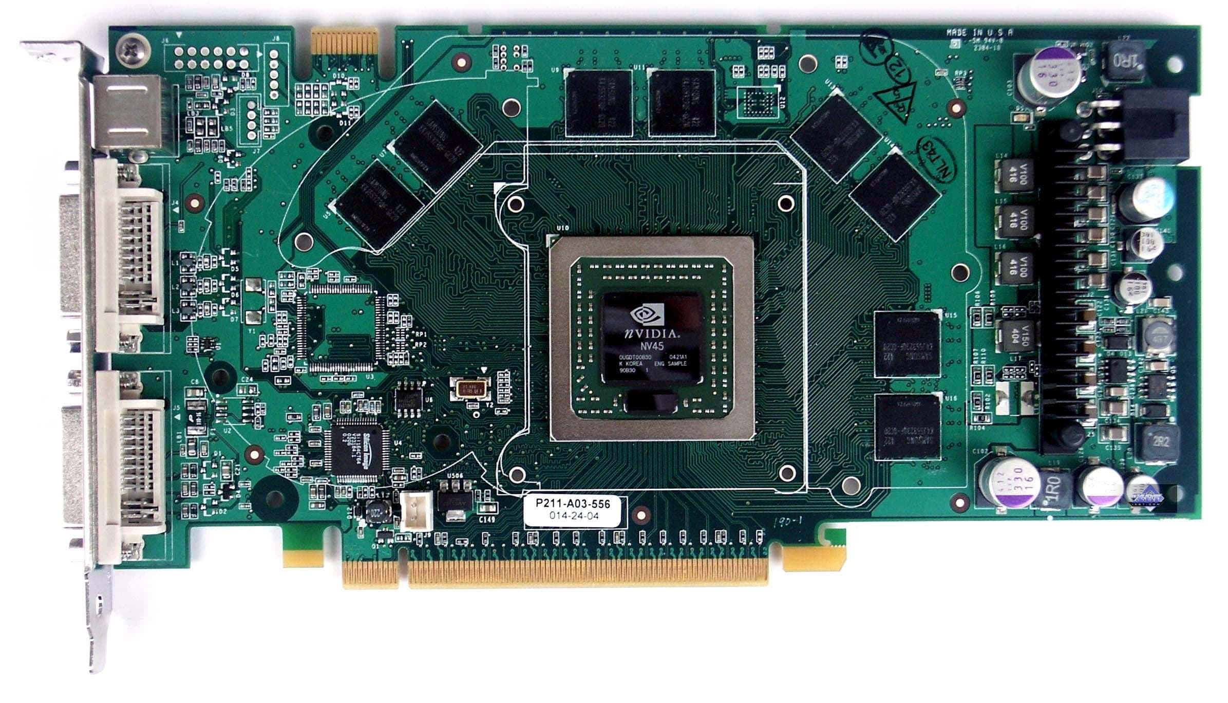 Однако линейка PCI-E-карт была все же не такой, какую мы видели чуть выше (среди продуктов c AGP-интерфейсом). В ней присутствовали лишь первые два изделия с полноценными 16/6-конвейерными чипами. А урезанных по конвейерам версий не было. То есть, NVIDIA, как и учла уроки семейства под AGP в плане разблокировок конвейеров, так и решила удешевить производство, и не ставить на относительно недорогие карты очень сложный и дорогой по себестоимости NV45. Ведь если приходилось урезать NV40 и мириться с тем, что на карты ценой в 250-350 долларов идут полноценные 16/6-конвейерные чипы, то в случае в PCI-E, это становилось просто нерентабельным.