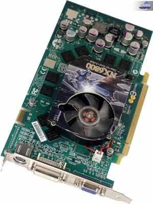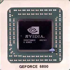- GeForce 6800 (12 пиксельных и 5 вершинных конвейеров, частоты работы 325/350 (700) МГц, 256бит-шина обмена с памятью, 128MB).