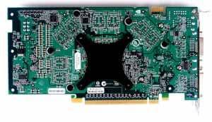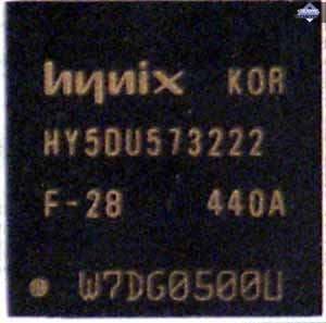 | Карта имеет 256 МБ памяти DDR SDRAM, размещенной в 4-х микросхемах на лицевой стороне PCB. Микросхемы памяти Hynix. Время выборки у микросхем памяти 2.8 ns, что соответствует частоте работы 350 (700) МГц. | ![]() |
