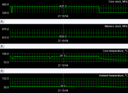 То есть ядро нагрелось до 81 градуса! И это при наличии дополнительного обдувающего вентилятора! Хотя разгон очень хорош, чип смог работать на частоте на 100 МГц выше номинала.
