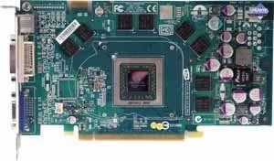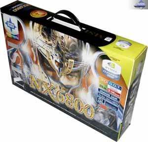 - GeForce 6800 Ultra (16 пиксельных и 6 вершинных конвейеров, частоты работы 400-425/550 (1100) МГц, 256бит-шина обмена с памятью, 256MB).