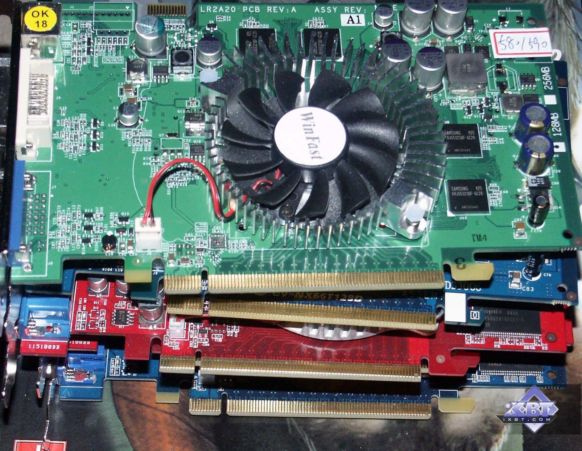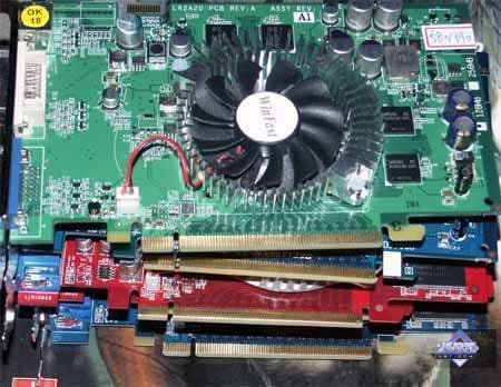 Под кулерами, как и следовало ожидать, находятся герои дня, процессоры GeForce 6200, 6600 и 6600GT.