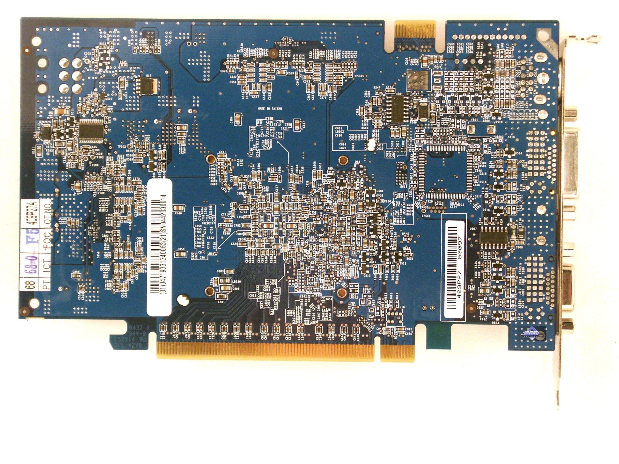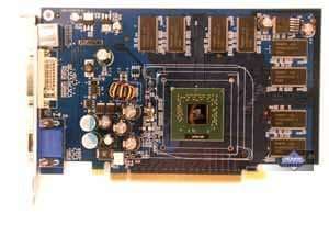 | Карта имеет интерфейс PCI-Express x16, 128 МБ памяти GDDR3 SDRAM размещенной в 4-х микросхемах на лицевой стороне PCB. Микросхемы памяти Samsung (GDDR3). Время выборки у микросхем памяти 1,6 ns, что соответствует частоте работы 625 (1250) МГц, память же работает на частоте 500 (1000) МГц. Частота работы GPU — 500 MHz. Шина обмена с памятью — 128 bit. Число пиксельных конвейеров × число текстурных блоков — 8х1. Число вершинных конвейеров — 3. | ![]() |