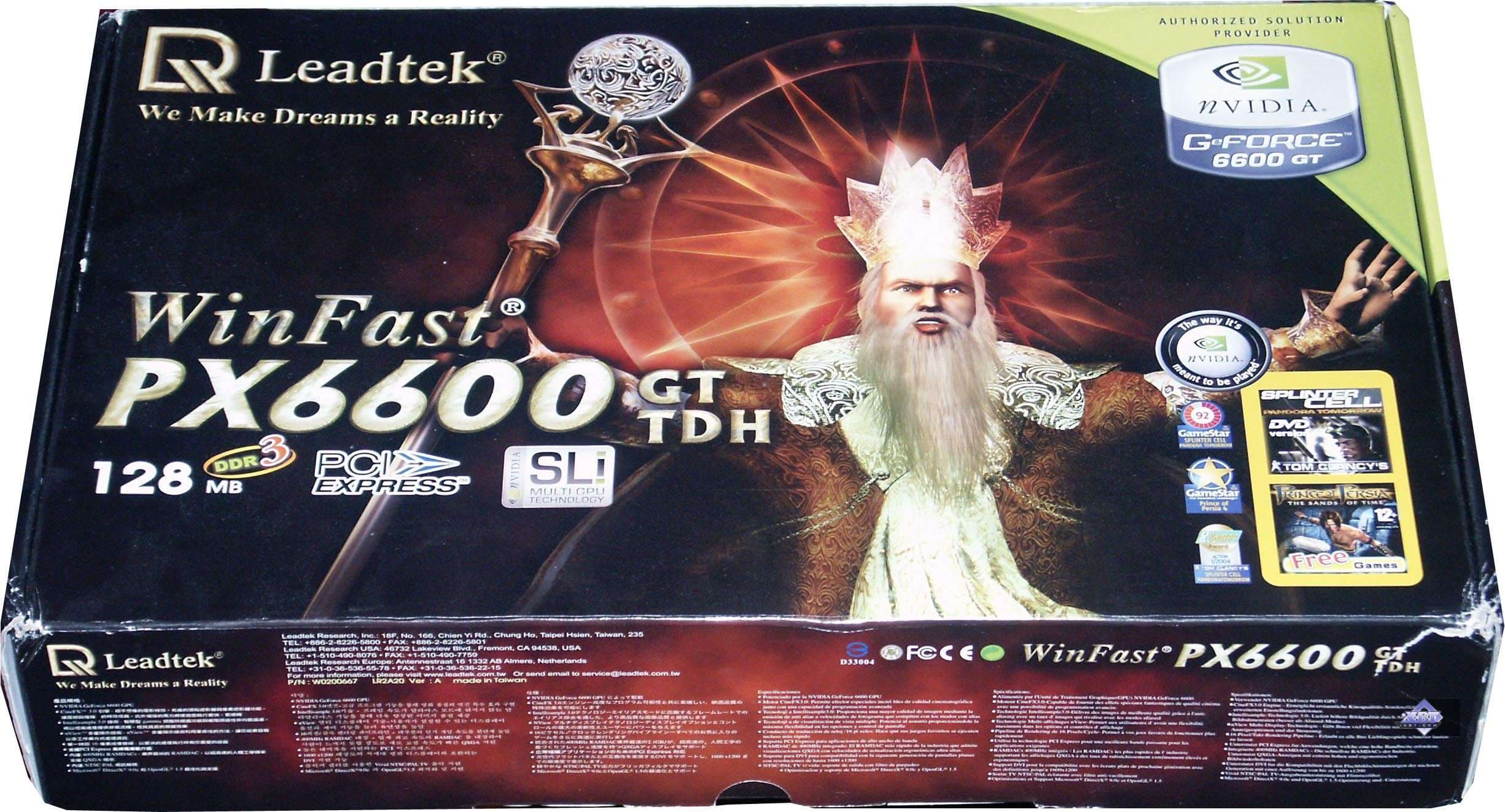 - Leadtek WinFast PX6600GT TD — копия эталона, сама карта ничем иным не примечательна. Комплект поставки — приличный, но для 4-х месячной давности, за что, кстати, мы даже давали награды, но сейчас Prince of Persia — уже игра прошлого, как и SCPT. Пока бы менять комплектацию играми более свежего выпуска. Качество 2D в 1600х1200 при 85 Гц — хорошо.