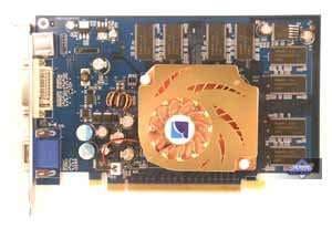 | Карта имеет интерфейс PCI-Express x16, 128 МБ памяти GDDR3 SDRAM размещенной в 4-х микросхемах на лицевой стороне PCB. Микросхемы памяти Samsung (GDDR3). Время выборки у микросхем памяти 2,0 ns, что соответствует частоте работы 500 (1000) МГц, на которой память и работает. Частота работы GPU — 500 MHz. Шина обмена с памятью — 128 bit. Число пиксельных конвейеров × число текстурных блоков — 8х1. Число вершинных конвейеров — 3. | ![]() |