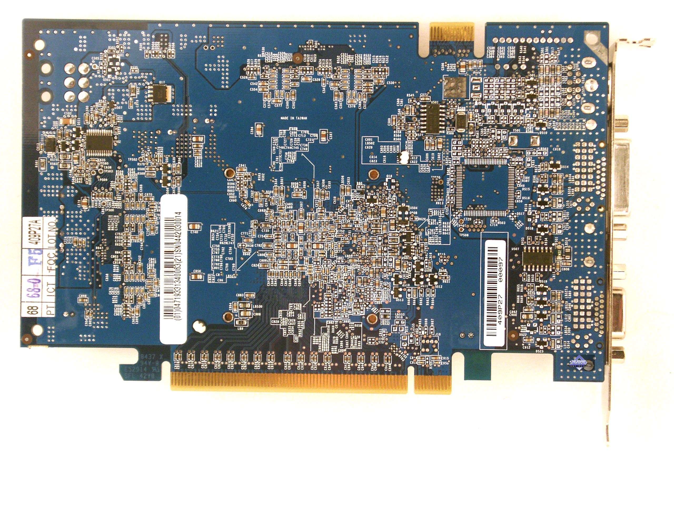 | Карта имеет интерфейс PCI-Express x16, 128 МБ памяти DDR SDRAM размещенной в 8-ми микросхемах на лицевой стороне PCB. Микросхемы памяти Hynix. Время выборки у микросхем памяти 4 ns, что соответствует частоте работы 250 (500) МГц, на которой память и работает. Частота работы GPU — 300 MHz. Шина обмена с памятью — 128 bit. Число пиксельных конвейеров × число текстурных блоков — 4х1. Число вершинных конвейеров — 3. | ![]() |
