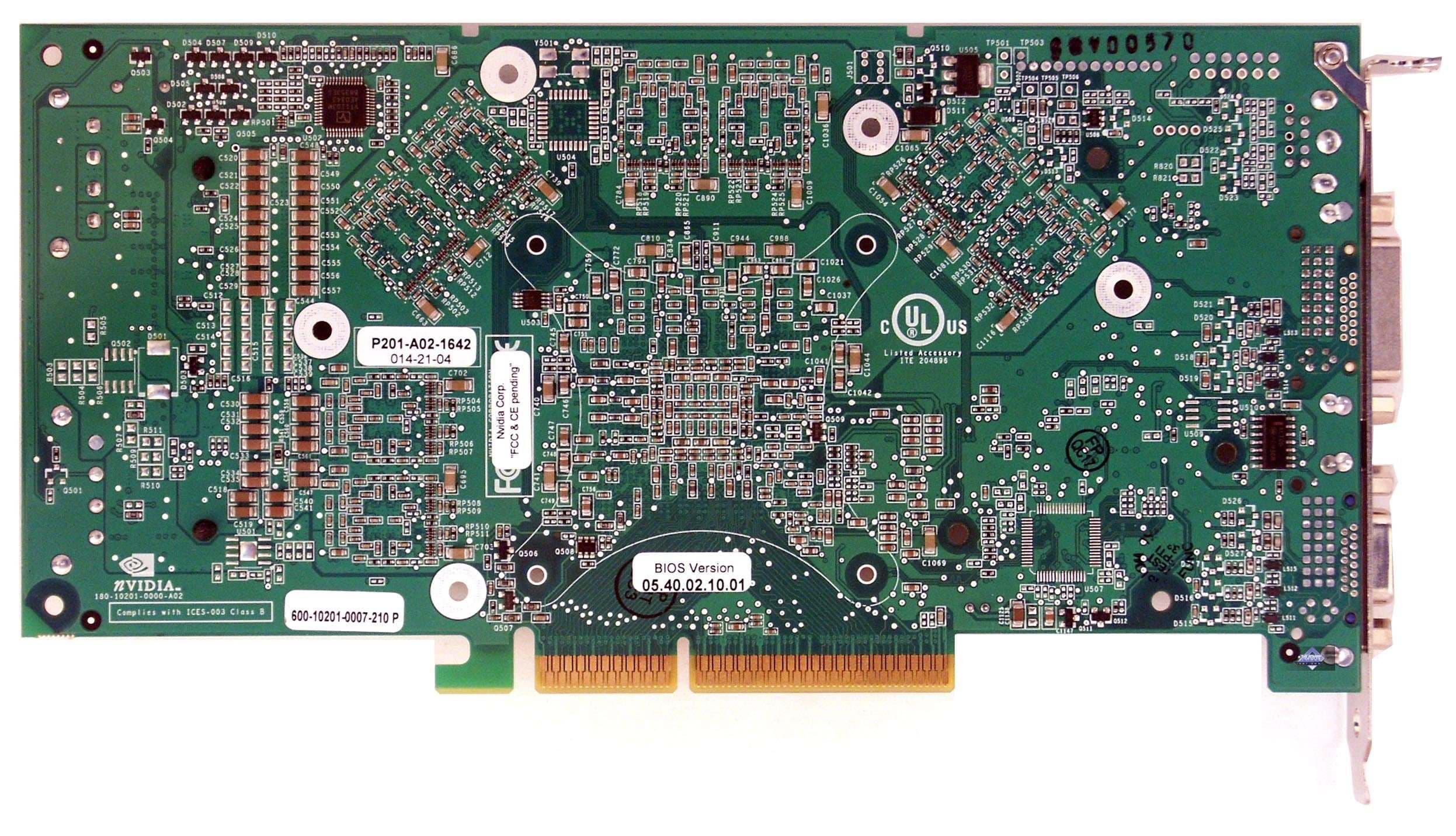 Мы видим, что карта немного отличается от своего AGP-варианта, — лишь самим основанием карты, да разъемом для внешнего питания.