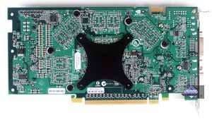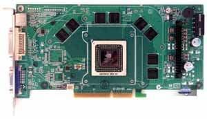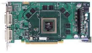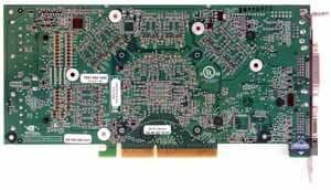 | Карта имеет интерфейс PCI-E x16, 256 МБ памяти GDDR3 SDRAM, размещенной в 8-ми микросхемах на лицевой стороне PCB. Микросхемы памяти Samsung (GDDR3). Время выборки у микросхем памяти 2.0 ns, что соответствует частоте работы 500 (1000) МГц, на которой память и работает. Частота работы GPU — 350 MHz. Шина обмена с памятью — 256 bit. | ![]() |