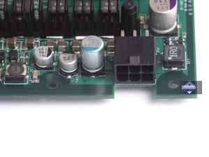 Да, несмотря на то, что по питанию система на PCI-E способна « проглотить» целых 75Вт, все же этого недостаточно для полноценной работы карты, поэтому внешнее питание все еще требуется. Как вариант решения проблемы с тем, что от многоразовых « втыканий» и выниманий хвостов питания из обычного разъема, последний часто ломается (а переходники-разветвители поставляются далеко не со всеми картами, да и многие все равно ими не пользуются), предложено новое гнездо. Как следствие, в обязательном порядке с картой должен поставляться переходник: