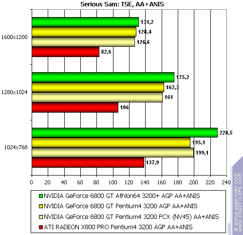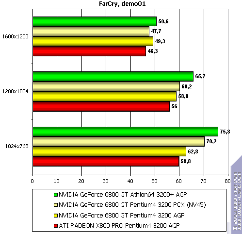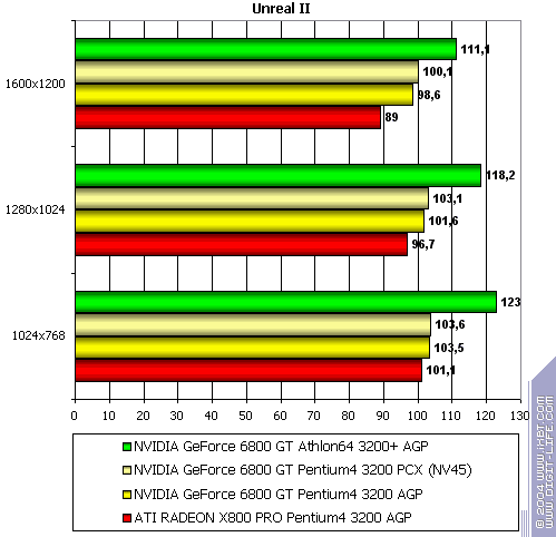 - NVIDIA GeForce 6800 GT PCI-E (NV45) против ATI RADEON X800 PRO AGP — выигрыш у детища NVIDIA