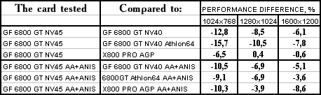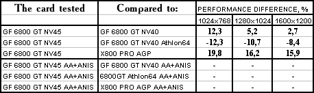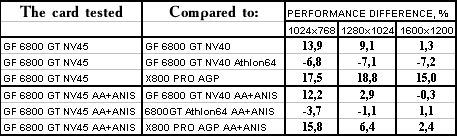 - NVIDIA GeForce 6800 GT PCI-E (NV45) против ATI RADEON X800 PRO AGP — победа