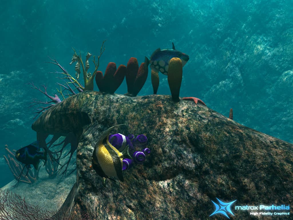 - Ну и, конечно же, возможности в 2D и технологии вывода изображения на три приемника. Это действительно где-то сенсация, пусть и для очень узкого круга пользователей (мало кто может позволить себе заиметь три LCD-монитора для получения такого эффекта). Параллельно с этим отметим, что все наработки Matrox в плане TV-out вместились в новом продукте, и для вывода картинки на ТВ Parhelia просто незаменима (разумеется, для тех, кто способен выложить $400 за подобную карту).