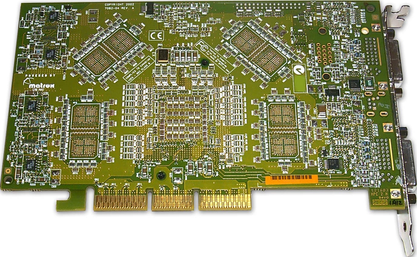 Как мы уже говорили, канадская компания Matrox Graphics (в дальнейшем просто Matrox), подразделение корпорации Matrox Electronic Systems Ltd, совершенно неожиданно для многих (ну, не считая, конечно, поклонников Matrox, которые ждали анонсов от любимой компании ежесуточно :-) ) выпустила в свет довольно уникальный продукт. Чем же он уникален? Более подробно об этом можно почитать в вышеупомянутом материале-превью, а сейчас мы только коротко скажем, что самая главная особенность данного продукта состоит в том, что это плод деятельности компании за несколько лет(!). Ведь после 1999 года от канадской фирмы по сути не было новинок (G450, как и G550 — достаточно вялые попытки представить на рынке видоизмененный G400, поскольку ни существенных улучшений в возможностях, ни роста скорости в 3D не было). Витали только слухи о якобы появившемся на горизонте G800, а потом и G1000. Собственно, даже после известий о том, что Matrox представит новый продукт, многие называли его G1000.