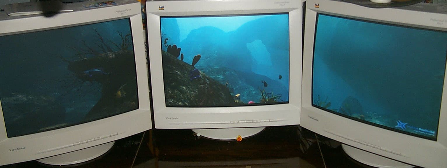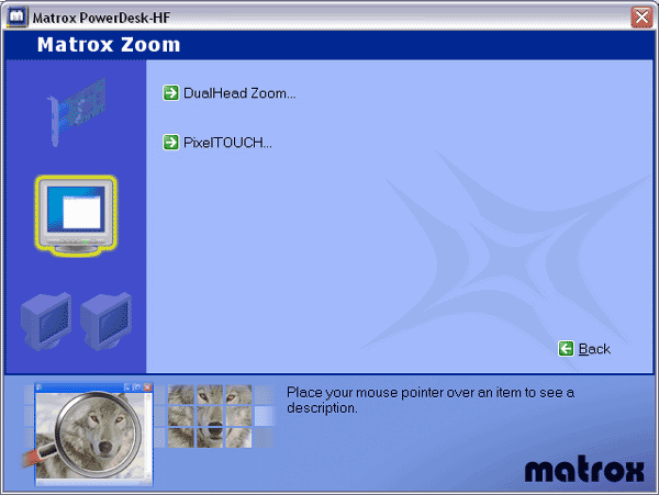 - Возможность вывода одного изображения, растянутого на два или даже три (!) приемника. Например, на 2 встроенных и один внешний RAMDAC или на оба встроенных RAMDAC и TV-Out. Суммарное разрешение в тройном режиме до 3840x1024x32bpp. Технологии TripleHead Desktop, Surround Gaming и DualHead-HighFidelity (HF) (Есть!)