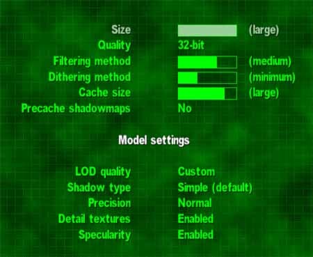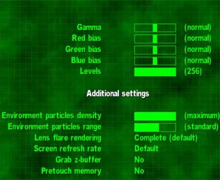 детализации — High, уровень детализациитекстур — №4, S3TC OFF, плавность кривых поверхностей резко увеличена при помощи переменныхr_subdivisions "1" иr_lodCurveError "30000" (подчеркну, что по умолчанию r_lodCurveError "250" !), конфигурации можно скачать тут - Comanche4 Benchmark Demo (NovaLogic) — Direct3D, Shaders, Hardware T&L, Dot3, cube texturing, максимально возможное качество