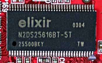 | Карта имеет интерфейс AGP x8/x4, 256 МБ памяти DDR SDRAM , размещенной в 8-ми микросхемах на лицевой и оборотной сторонах PCB. Микросхемы памяти марки Elixir. Время выборки у микросхем памяти 5 ns, что соответствует частоте работы 200 (400) МГц, на которой память и работает. Частота работы GPU — 400 MHz. Интерфейс обмена с памятью — 128 бит. | ![]() |