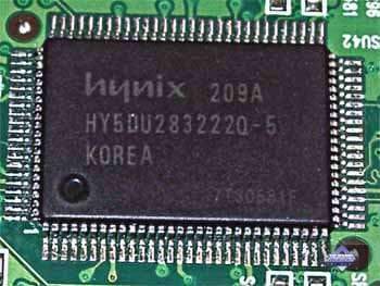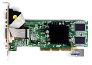 | Карта имеет интерфейс AGP x4/x2, 64 МБ памяти DDR SDRAM , размещенной в 4-х микросхемах на лицевой и оборотной сторонах PCB. Микросхемы памяти производства Hynix. Время выборки у микросхем памяти 5 ns, что соответствует частоте работы 200 (400) МГц. Частота работы GPU и памяти — 155 MHz. Отметим, что это сильно пониженные частоты относительно изначально установленных для таких карт (183/183 (366) МГц). Интерфейс обмена с памятью — 64 бит. | ![]() |