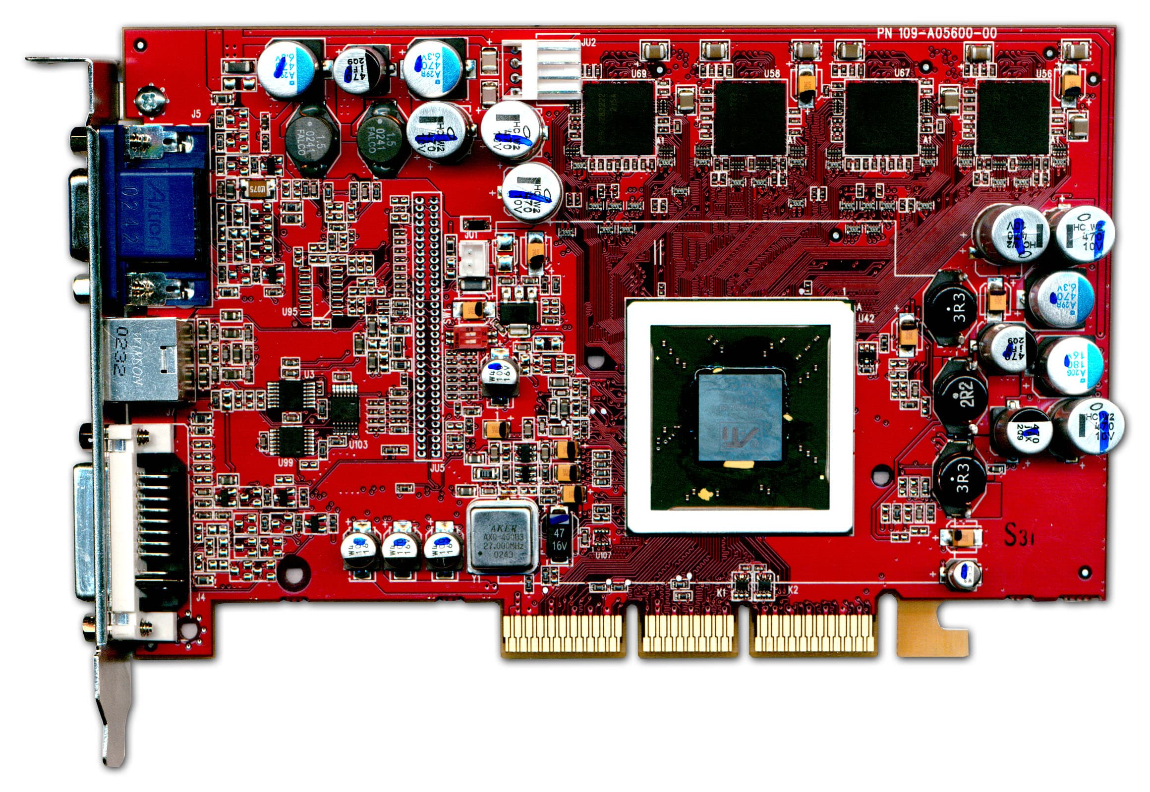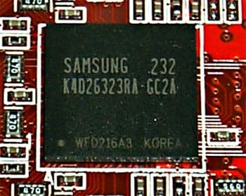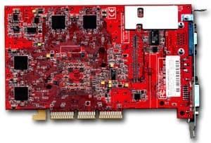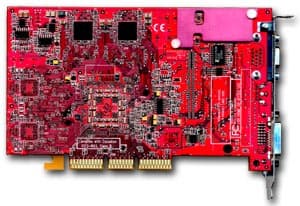 | Карта имеет интерфейс AGP x8/x4, 128 МБ памяти DDR SDRAM, размещенной в 8-ми микросхемах на обеих сторонах PCB. Микросхемы памяти производства Samsung. Время выборки у микросхем памяти 2,8 ns, что соответствует частоте работы 357 (714) МГц, память же работает на частоте — 310 (620) МГц. GPU функционирует на обычной для R9700PRO частоте 325 МГц. | ![]() |