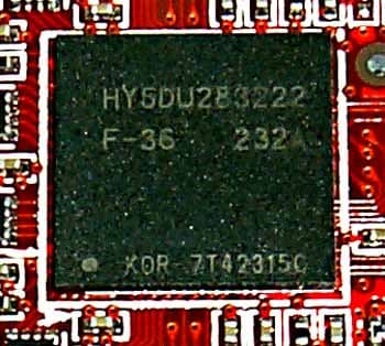| Карта имеет интерфейс AGP x8/x4, 128 МБ памяти DDR SDRAM, размещенной в 8-ми микросхемах на обеих сторонах PCB. Микросхемы памяти производства Hynix. Время выборки у микросхем памяти 3,6 ns, что соответствует частоте работы 275 (550) МГц, но память тактуется стандартными значениями частот — 270 (540) МГц. GPU функционирует также на обычной для R9500 частоте 275 МГц. Шина обмена с памятью — 128 bit (аппаратно, но в режиме АА работает сжатие буфера, поэтому можно вести речь о виртуальной 256 bit шине в АА). | ![]() |