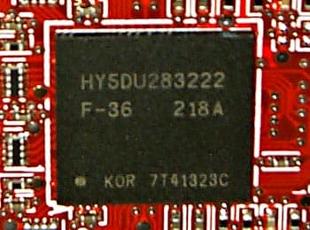 | Карта имеет интерфейс AGP x8/x4, 128 МБ памяти DDR SDRAM, размещенной в 8-ми микросхемах на обеих сторонах PCB. Микросхемы памяти производства Hynix. Время выборки у микросхем памяти 3,6 ns, что соответствует частоте работы 275 (550) МГц, но память тактуется стандартными значениями частот — 270 (540) МГц. GPU функционирует также на обычной для R9500 частоте 275 МГц. Шина обмена с памятью — 256 bit (аппаратно). | ![]() |