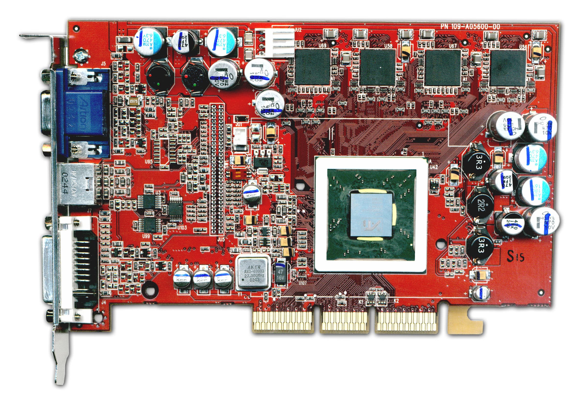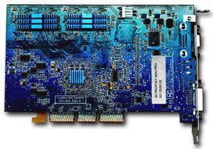 | Карта основана на AGP X2/4/8 интерфейсе, имеет 128 мегабайт DDR SDRAM памяти, расмещенной в 8-ми микросхемах по обеим сторонам PCB. Интерфейс обмена с памятью — 128бит. Память изготовлена Hynix, время выборки 3.6 ns, что соответствует частоте работы примерно 275 (550) МГц, но микросхемы тактуются на 270 (540) МГц. Ядро функционирует на стандартной для RADEON 9700 частоте 275 МГц. | ![]() |