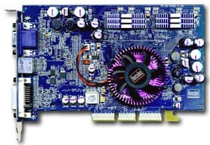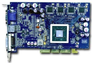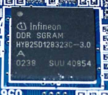 | Здесь мы видим те же 128 мегабайт 128-битной памяти, интерфейс AGP X2/4/8. Но эти микросхемы памяти уже от Infineon, время выборки примерно 3.0 ns, что соответствует частоте 333 (666) МГц, память же работает на штатной частоте 270 (540) МГц. Ядро — 275 МГц. | ![]() |