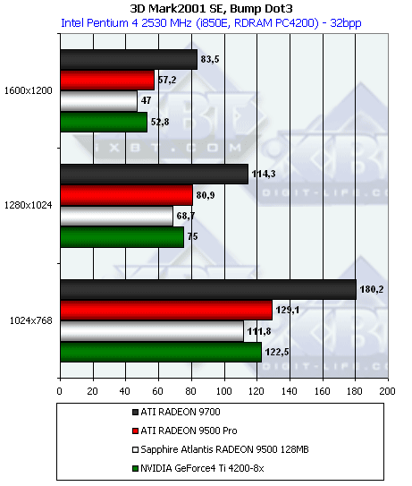 Dot3 дается Ti 4200 легче, чем RADEON 9500, но 9500 PRO все же впереди.
