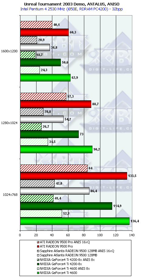 - Unreal Tournament 2003 Demo v.1027 (Digital Extreme/Epic Games) — Direct3D, Vertex Shaders, Hardware T&L, Dot3, cube texturing, качество по умолчанию, ANTALUS