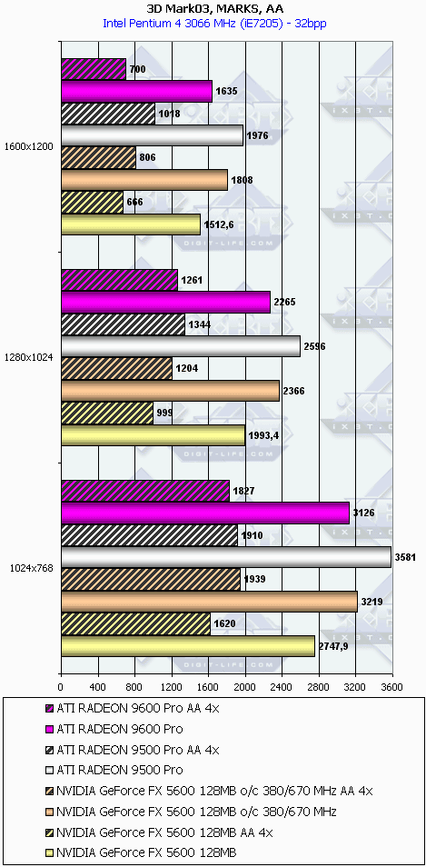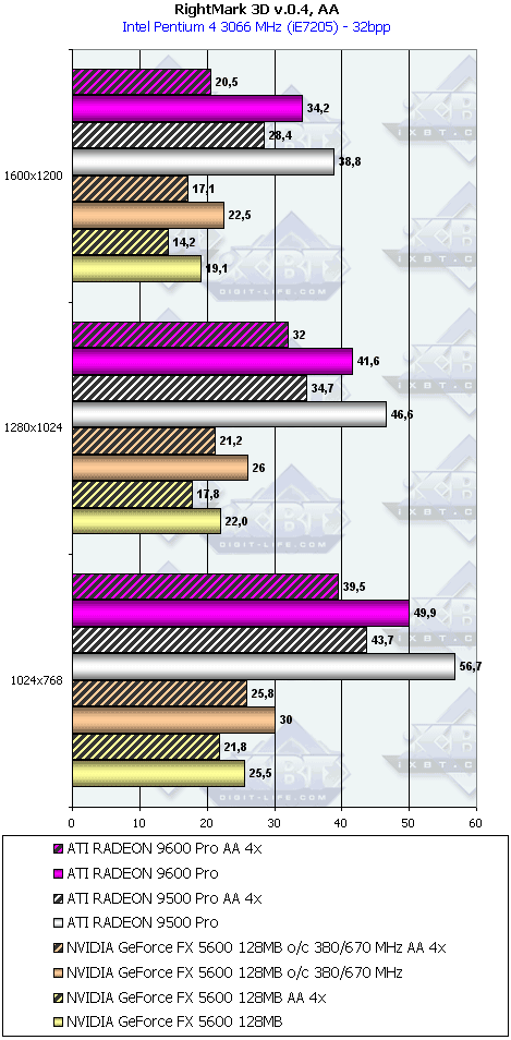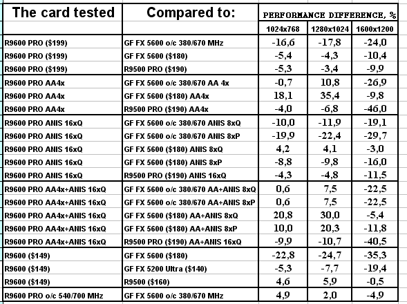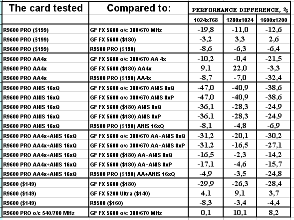 Фактически проигрыш разогнанному 5600, кроме режима с АА. Относительно GF FX 5600 еще как-то карта смотрится, но все же ценовые категории разные.