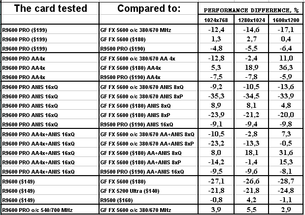 Что касается производительности RADEON 9600 PRO, то выводы очевидны: