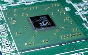 Интересно отметить, что упаковка чипа все же оставлена FCPGA, с открытым кристаллом. Обратим внимание на отсутствие рамки, которая ранее защищала R300 от повреждений.