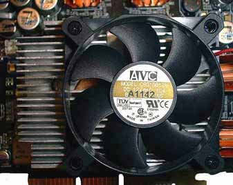 ПРИМЕЧАНИЕ! Обратите внимание на то, что вентилятор максимально смещен относительно кристалла видеопроцессора настолько, насколько этого позволяют размеры радиатора. Это сделано для того, чтобы исключить нахождение мертвой зоны вентилятора (место под центром вентилятора, где поток воздуха практически отсутствует) над кристаллом и обдувать последний большим потоком воздуха (который увеличивается по мере удаления от центра вентилятора).