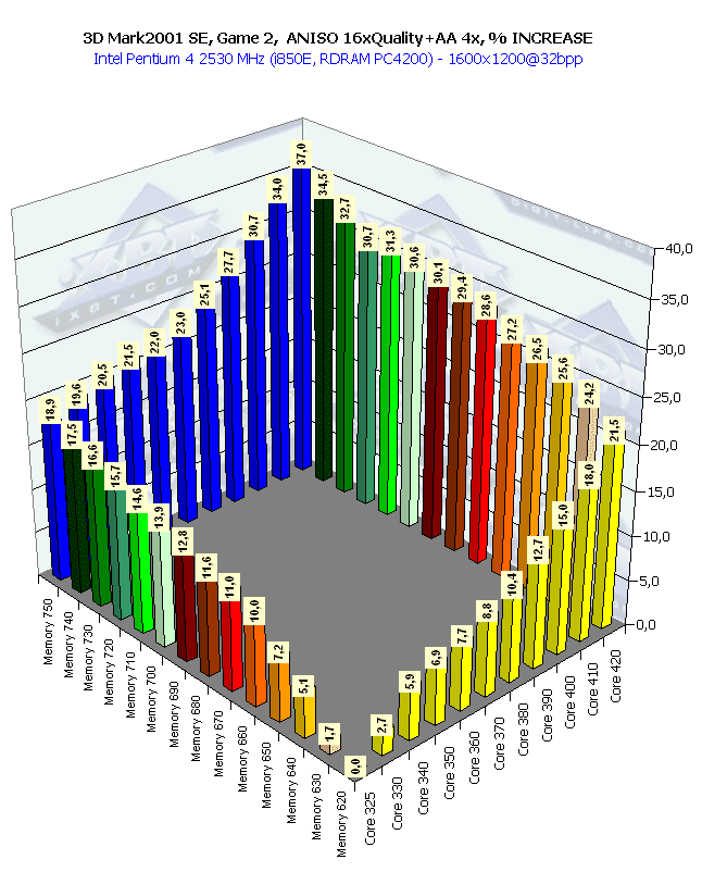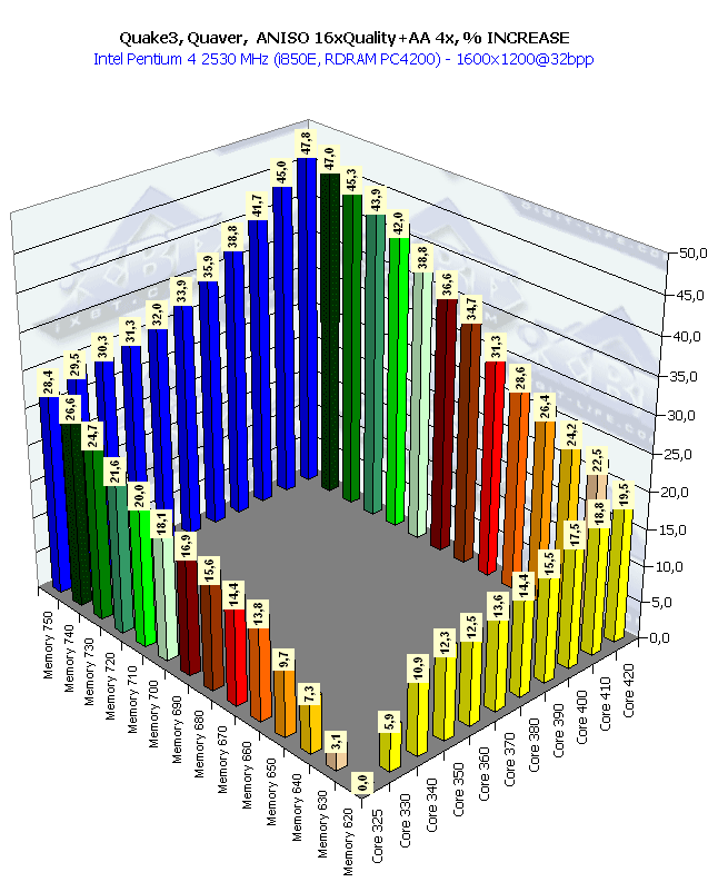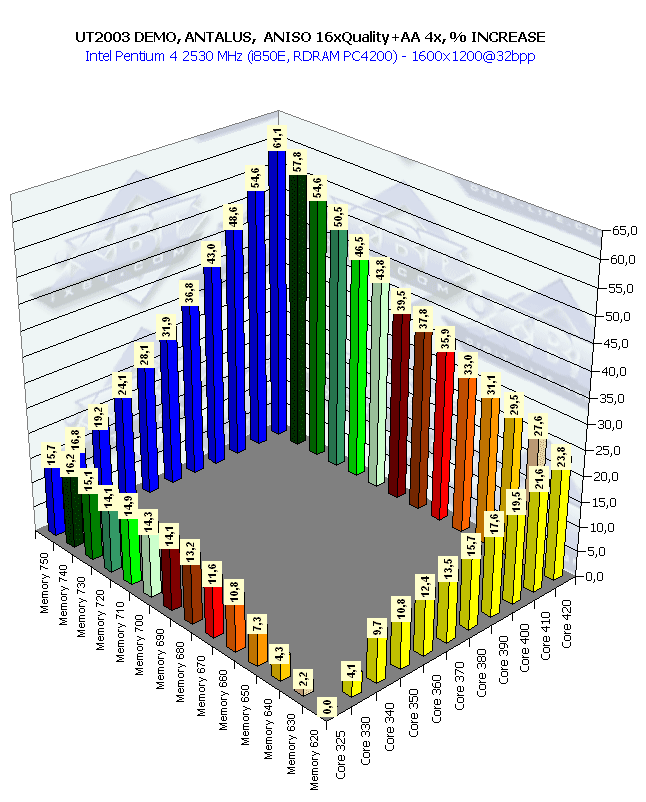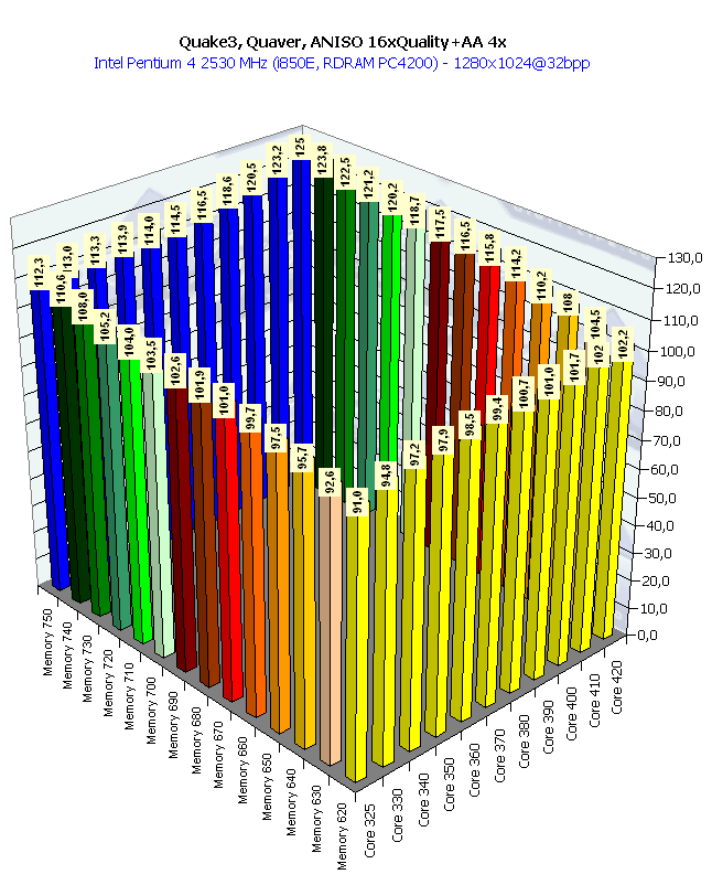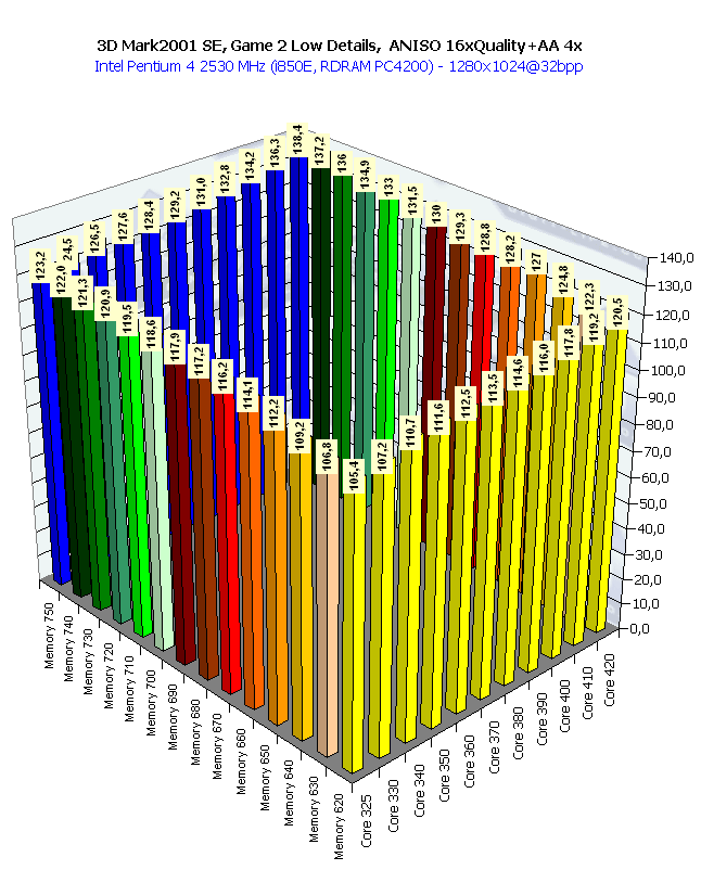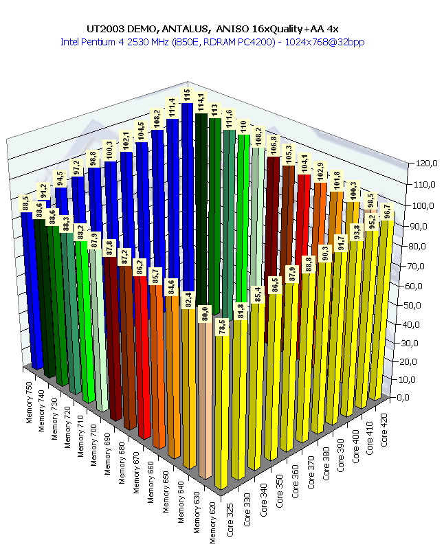 Собственно, картина та же самая, что и в 1024х768 при анизотропии и АА. Наиболее важным является прирост частоты памяти, поскольку АА "любит очень много кушать".
